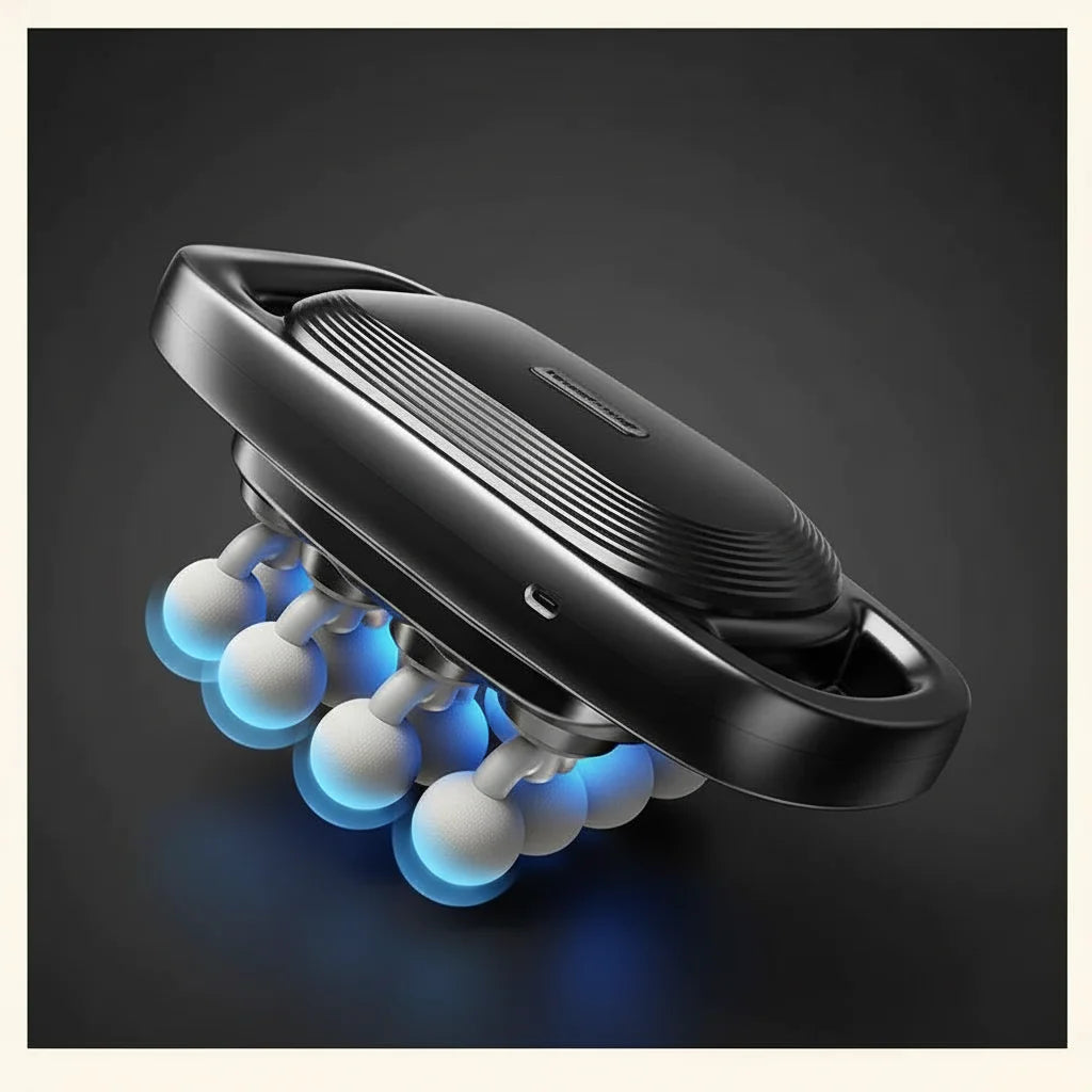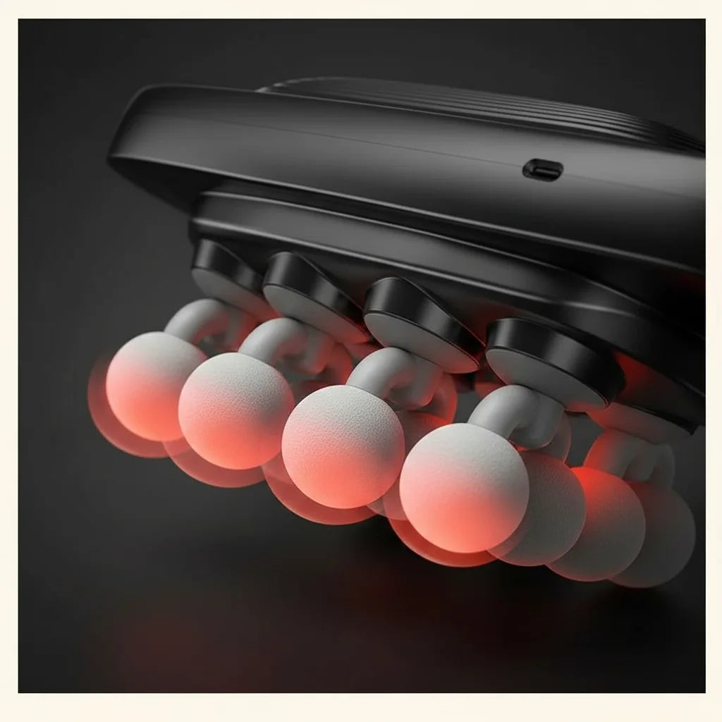 Each spherical head works in harmony, offering a deeply tailored experience that addresses specific areas of tension, restoring your sense of calm and well-being with precision.